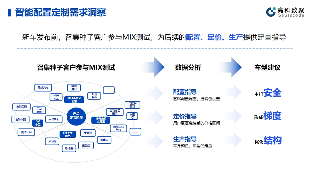 智能配置的有效应用可以帮助企业提升产品和服务的智能化水平。在实际应用中,云配查系统帮助车企在新车发布前召集种子客户参与MIX测试,顺利获得收集种子客户的反馈和数据,车企能够精细调整产品配置,为后续的配置、定价、生产给予定量指导。同时,这种方法不仅有助于提高产品质量,还能提前发现潜在问题并及时解决。