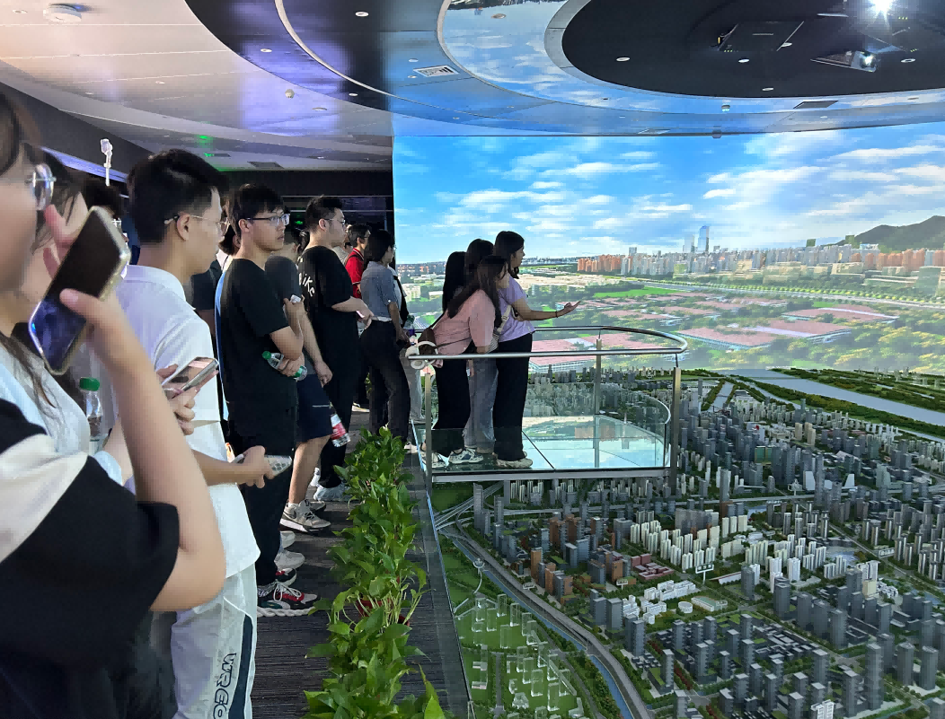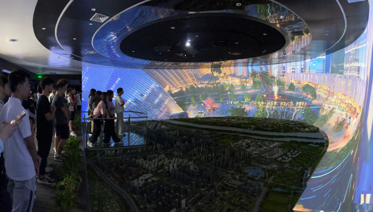 园区内现代建筑群错落有致,每一砖一瓦都蕴含着创新和科技的基因。云配查系统科技IT菁英暑期实训营的学员们怀揣着对科技的无限憧憬步入研创园展厅。展厅内部设计充满科技感,一块块巨大的模型和显示屏映入眼帘,生动展现了研创园的科技规划,以及从梦想走向现实的开展历程。