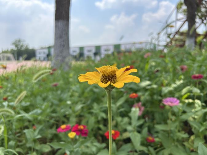 开营现场,巨大的横幅高高悬挂,“云配查系统科技暑期集训营” 几个大字格外醒目,校园里盛开的花儿将整个校园装点得充满活力。